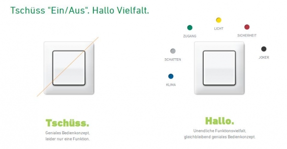 Diese Farbeinteilung ist von den Gehäusefarben der digitalSTROM-Komponenten über Taster bis hin zu Smartphone-Apps einheitlich, was die Benutzung sehr intuitiv macht
